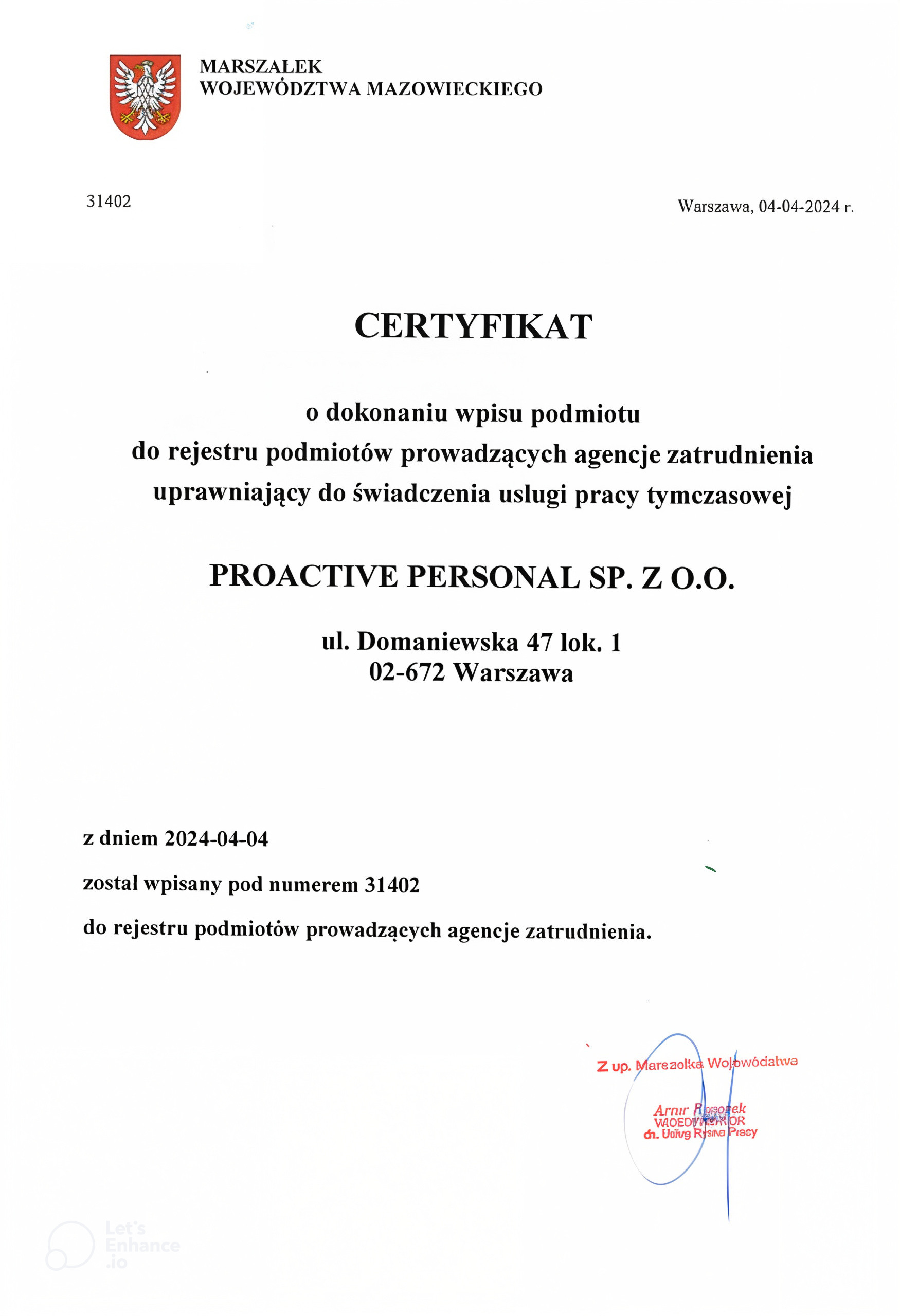 ПОЛЬЩА – вул. Доманевська 47/1, 02-672 Варшава – ProActive Personal Sp. z o.o.